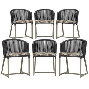 6 Cadeiras De Jantar Noronha Fendi Corda Náutica E6 Trama Preto
