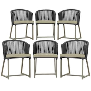 6 Cadeiras De Jantar Noronha Fendi Corda Náutica E7 Trama Preto