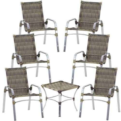 6 Cadeiras Emily E Mesa Em Alumínio - Jardim, Piscina, Área Trama - Bege Médio