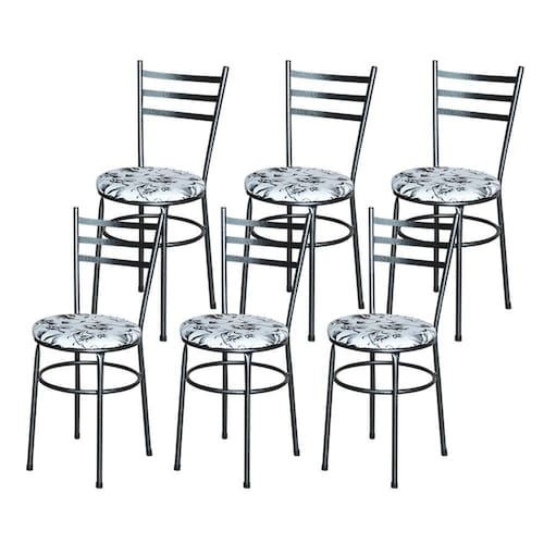 6 Cadeiras Epoxi Preta Craqueada Para Cozinha Assento Floral Cor:floral Branco