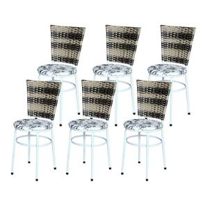 6 Cadeiras Para Mesa Branca Hawai Cappuccino Premium Assento Floral Cor:floral Branco