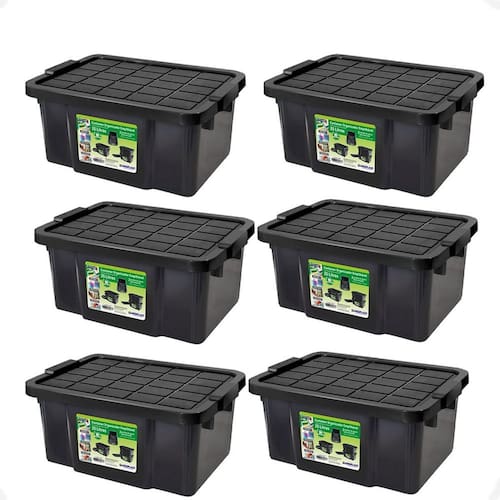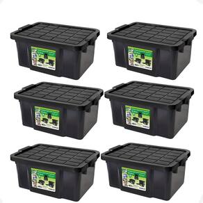 6 caixa organizadora multiuso preta 15l empilhável com tampa Container organizador empilhavel 15 lts - primeira moagem
