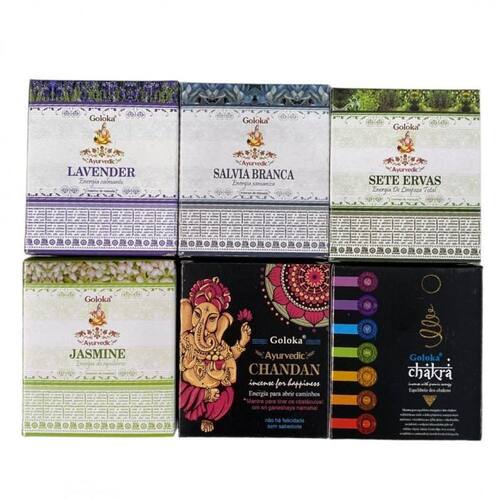 6 Caixas Incensos Cascata Goloka Diversos 6 Caixas Incensos Cascata Goloka Diversos Kit bialluz 6 caixas conteúdo da embalagem: uma caixinha com 10 incensos cones tradicional.Fabricação em massala - origem: Índia. Caixinha contém 10 cones refluxo Composição: carvão aglutinante, varetas de bambu, óleo aromático de sândalo e essências. Como usar: Mantenha o incensário afastado de correntes de ar ou vento se não a fumaça não irá se movimentar corretamente.Acenda a ponta do incenso goloka até ele ficar avermelhado em brasa e a fumaça sair por baixo do incenso.Após isso coloque o incenso no incensário e ele queimará por até 20 minutos. Enviamos o seu produto em até 24 horas após a confirmação de pagamento Caso tenha alguma dúvida nos mande mensagem que respondemos rapidinho para te ajudar da melhor forma possível Marca: Meta Atacado