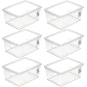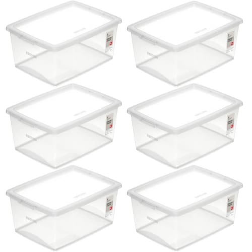 Conjunto 6 Caixas Organizadoras 15L de Plástico Empilháveis com Tampa My Closet Ordene Multiuso Transparente