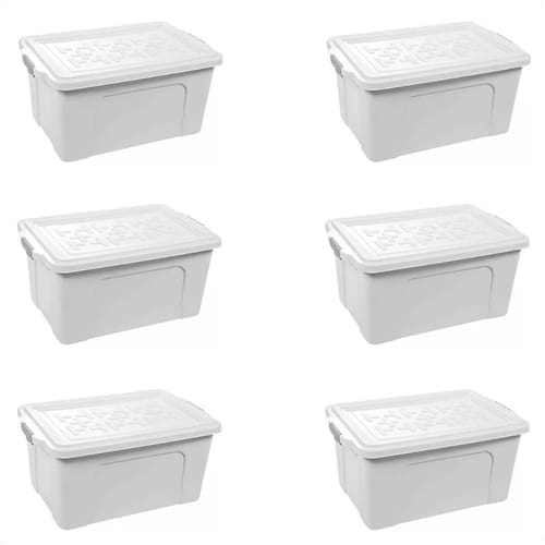 6 Caixas Organizadoras Reforçadas Container 70 Litros Branca 6 Caixas Organizadoras Reforçadas Container 70 Litros Branca Descrição: Caixa organizadora container produzida em polipropileno. Possui capacidade de armazenamento de 70 litros e seu design permite empilhamento com segurança, facilitando a organização em espaços menores. Acompanha tampa com travas . Especificações: Material: Polipropileno Cor: Branco Capacidade: 70 litros Com travas Medidas: 67 x 31,5 x 43 cm CxAxL Peso: 2,52kg Marca: São Bernardo Cód Fornecedor: 00OR07-02 IMAGENS MERAMENTE ILUSTRATIVAS Marca: Não Informado Ean: 7907403723006