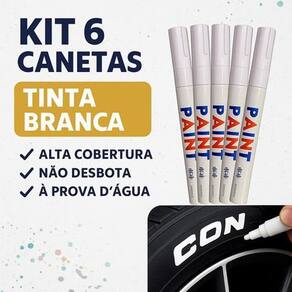 Destaque seu carro ou moto com estilo O Kit 6 Canetas Paint Marker Branca é perfeito para personalizar e destacar as letras dos pneus, retoques ou customizações em diversas superfícies. Produto de alta qualidade, resistente à água e com tinta permanente à base de óleo para máxima durabilidade. Benefícios: Alta cobertura - cor intensa e vibrante. Não desbota - resistência ao tempo e ao uso. À prova dágua - ideal para pneus, placas e customizações externas. Traço preciso - ponta grossa de feltro 2,8mm para contornos definidos. Uso versátil - aplica em metal, plástico, borracha, vidro, madeira, tecido, couro e muito mais. Recomendações de Uso: Agite bem a caneta antes de usar. Pressione a ponta sobre papel até a tinta fluir. Para contorno das letras de 1 pneu, use 1 caneta. Para preenchimento completo das letras de 1 pneu, use 2 canetas. Para os 4 pneus, indicamos de 4 até 6 canetas, dependendo do tamanho das letras. Recomendação aproximada, pode variar de acordo com o tamanho e a quantidade de letras. Conteúdo do Kit: Cada caneta com ponta redonda de 2,8mm. Ideal para: Personalizar letras de pneus de carro e moto. Customizar tênis muito na cultura sneakerhead . Pintar, desenhar e marcar em diversas superfícies.