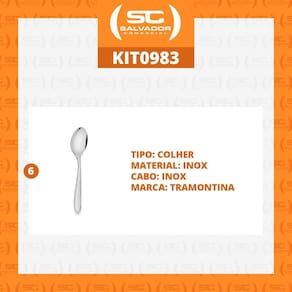 OBS: Veja na descrição os itens que acompanham o jogo. COMPONENTES DO KIT: - 6 Colheres de Sopa Laguna em Aço Inox CITOP - Tramontina 63906010 Colher de Sopa Laguna em Aço Inox CITOP - Tramontina 63906010 A Colher de Mesa Tramontina Laguna em Aço Inox é peça essencial para fazer parte do seu dia a dia, isso porque ela se adapta a qualquer ambiente. A peça possui formato simétrico e bordas Delicadamente arredondadas, que oferecem maior conforto na sua utilização, além de ser totalmente produzida em aço inox, ela possui acabamento em brilho e detalhes no cabo. O melhor de tudo é que Você pode levar a peça diariamente ao lava-louças sem afetar suas características. - Colher com bojo em formato simétrico e bordas cuidadosamente arredondadas, proporcionando maior conforto no uso. - Totalmente feita de aço inox, mantém suas características , preservando a beleza, a higiene e a durabilidade do material. - Acabamento em brilho, com detalhes no cabo. - Própria para uso diário combina com qualquer ambiente. - Pode ser lavada diariamente na máquina de lavar louças. - Peso Líquido: 0,040 kg. - Peso Bruto: 0,041 kg. - Espessura inox: 1,8 mm. - Medida Externa : 19cm x 4,3cm concha Marca: Não Informado