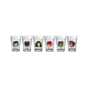 Coleção inspirada nos personagens do Universo DC. Produto produzido em vidro incolor e estampado com personagens da DC.