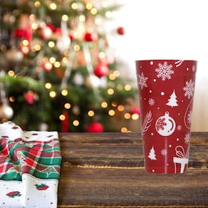 Este copo com estampa natalina é perfeito para trazer o espírito festivo para suas bebidas favoritas. Feito de melamina resistente, ele apresenta um design encantador com elementos clássicos do Natal, como flocos de neve, enfeites natalinos e árvores de Natal, tudo em uma cor vibrante que evocam a magia da temporada.