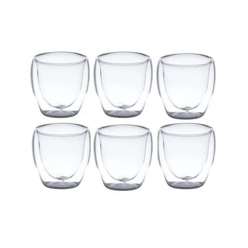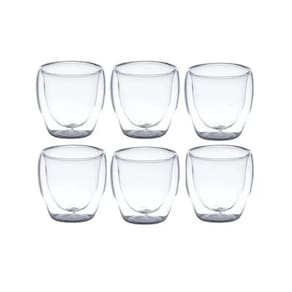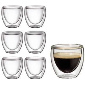 Conjunto com 6 lindos copos em vidro, com parede dupla, para apreciar uma bom café, capuccino ou um chocolate quente.