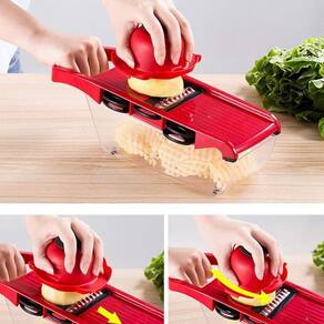 Mandolina é extremamente prático e útil em todos os momentos, facilitando a preparação dos alimentos e o seu armazenamento O utensílio possui compartimentos para preservar as lâminas que não estão sendo utilizadas, evitando que se percam ou fiquem dispersas.