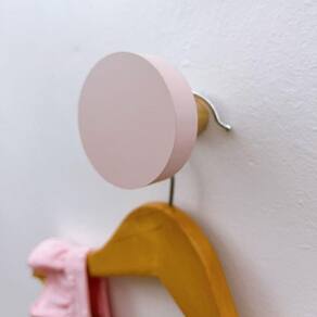 A face vai colada com super cola e acaba sendo apenas decorativa, pois é o suporte quem recebe o esforço, suportando até 5 Kg. Anúncio se refere à 6 unidades; Modelo: Bola; Tamanho de face: 6,0 cm; Material: MDF laminado 15mm melamínico Cor: Rosa bebê (rosê nude, rosinha, rosa milkshake)