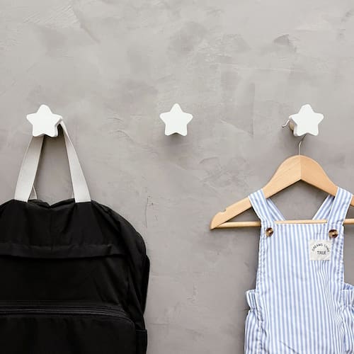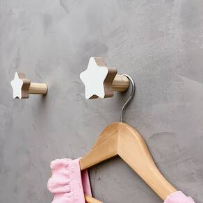 A face vai colada com super cola e acaba sendo apenas decorativa, pois é o suporte quem recebe o esforço, suportando até 5 Kg. Anúncio referênte à 6 unidades. Modelo: Estrela Tamanho da face: 5,0cm X 5,0cm; Material: MDF laminado 15mm melamínico | borda cru Cor: Rosa, Azul, Branco e Cinza