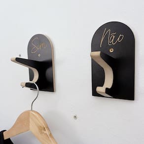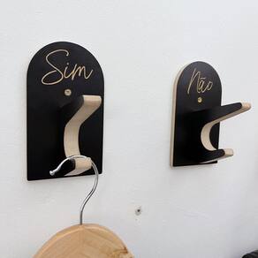 Trio de penduradores | Sim Não | com pino duplo Ideais para uso comercial em provadores de loja, facilitando a escolha das peças e mostrando todo o cuidado que o lojista moderno tem com seus clientes!
