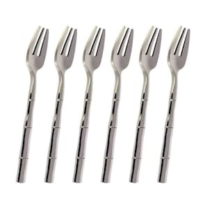 6 Garfos De Sobremesa Steel Wood Bambu Em Inox Lhermitage Com um design elegante e tamanho menor o Garfo de Sobremesa em Inox da linha Steel Wood é projetado para ser utilizado após a refeição principal, para saborear sobremesas deliciosas. Seu uso demonstra etiqueta e refinamento à mesa, tornando a experiência gastronômica ainda mais agradável, com a garantia de qualidade da marca LHermitage.O modelo Steel Wood tem traços leves e delicados. São peças funcionais, que atendem as mais variadas necessidades do dia a dia sem deixar a elegância faltar a mesa.Especificações do Produto:- Texturas do cabo estilo bambu- Design moderno e sofisticado- Material resistente- Peças funcionaisFicha Técnica:- Código: 4089180216- Marca: LHermitage- Modelo: Steel Wood- Conteúdo da Embalagem: 6 Garfos de Sobremesa- Material: Inox- Peso: 33g- Dimensões: 16cm x 2,5cm (AxL)- Garantia: 3 Meses (Contra defeito de fabricação) Altura - 16cm Largura - 2,5cm Peso - 33g Imagem - https://spicy.vtexassets.com/arquivos/ids/234302-800-auto?v=638367952300970000&width=800&height=auto&aspect=true Sobre a Marca - A LHermitage é o resultado de um trabalho desenvolvido por profissionais apaixonados e criativos. Referência em mesa posta e com um mix de produtos diversificado, encanta a todos com produtos requintados que estejam presentes no dia-a-dia, trazendo estilo a diversos ambientes do seu lar. Oferecem uma variedade de produtos, desde aparelhos de jantar, canecas, sousplats, bandejas, vasos, potes, petisqueiras e muito mais. Com coleções que se renovam semestralmente e apresentam novidades de alto padrão.