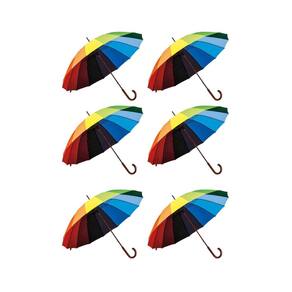 6 Guardas Chuva Arco Iris 16 Varetas Automático Reforçado