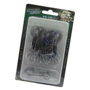 Kit com 6 iscas soft de silicone + 2 anzois zig head.