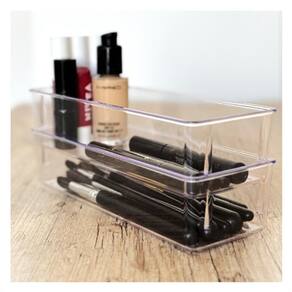 Tamanho compacto para espaços menores, material transparente para fácil visualização do conteúdo, empilhável e combinável com o modelo maior, design clean e versátil.