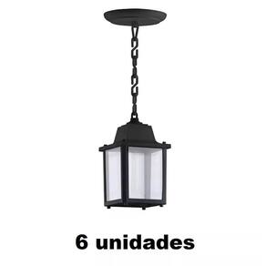 Kit com 06 unidades O pendente colonial em termoplástico é especial para usar em ambientes externos. Como possui proteção UV, ele resiste muito bem as ações do tempo. Uso Externo ou Interno - Cor: preto - Material: termoplástico injetado - Medidas: A 17cm x L 10,5cm x C 10,5cm - Fio: 19 cm - Canopla: Ø 12cm - Proteção UV - Não desbota ou fica quebradiço ao longo do tempo. - Não enferruja - Soquete porcelana: E27 (bocal comum) - Tensão: 127/220v - BIVOLT - Potência máxima: 20 W - Corrente: 4 A Lâmpada não inclusa