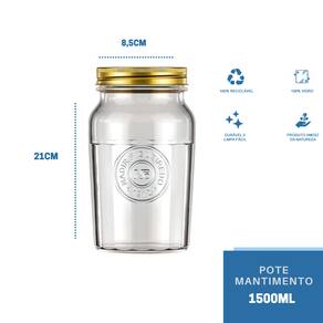 Pote Americano Mantimento Vidro Vintage 1500ml Nadir 6 unidades