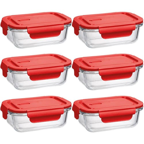 6 Potes Herméticos de Vidro Borossilicato 410ml UZ Pequenos Retangular Vermelho.