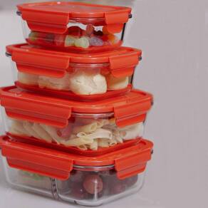 Garantia: 90 dias / Peso: 1,992kg / Cor predominante: vermelho / Ref: 7798138303652; Dimensões de cada pote com a tampa: 15cm (C) x 11cm (L) x 5,5cm (A); Dimensões área de uso de cada pote: 12,5cm (C) x 8,5cm (L) x 4,5cm (A); Dimensões de cada tampa: 15,5cm (C) x 11,5cm (L) x 3cm (A); Dimensões de cada pote: 14,5cm (C) x 10,5cm (L) x 5cm (A); Capacidade: 410ml cada; Materiais: vidro borossilicato, polipropileno e silicone; Conteúdo: 6 potes herméticos de vidro.