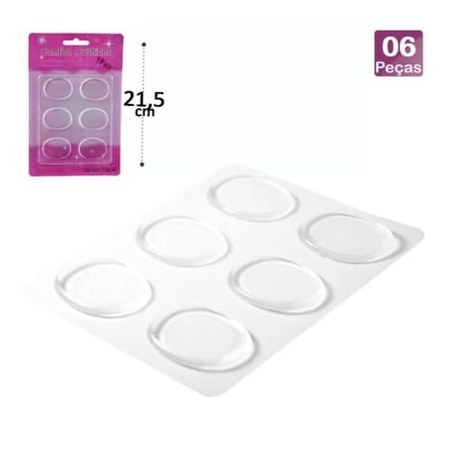 6 Protetores Silicone para Calcanhar e Pé Anti-calos Unissex Super protetor adesivo, 6 peças em silicone no blisterRelaxamento de seus pés, Saúde de seus pés.Conforte evitando deslizamento e deslocamento de seu pé dentro do calçado Produto lavável e reutilizável, seu uso a longo prazo não sofrerá deformação.Macio, Confortável, promove alívio das dores e pressão para os pés, ao usar sapatos de salto, tênis, botas, sapatilhas novas.Formato que possibilita uso em qualquer parte do pé que esteja incomodando ou causando dor e formando bolhas. Cor: Transparente.Contém: 6 unidades.Medida: 3x2,5cm. Material: Silicone.