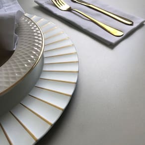 Com design moderno e elegante o sousplat cumpre uma das principais regras de etiqueta, que é nunca deixar a mesa desguarnecida durante a troca de pratos.