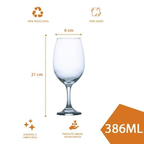 A Taça Rioja Vinho traz um toque de sofisticação e elegância para sua mesa, tornando o momento de servir especial, para você, seus familiares e visitas, com brindes muito mais graciosos. A Taça é produzida com vidro resistente e fácil de limpar.