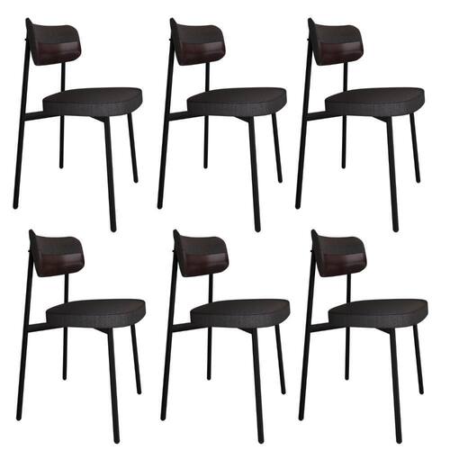 6 Unidades Cadeira Alloa Fixa Com 4 Pés 50 X 44,7 X 83,8 Cm - Corriente Grafite Courino Café - Preto Epoxi