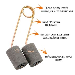 ROLO DE ESPUMA POLIÉSTER DUPLOMARCA: ROMAREF: 856-2•DESCRIÇÃO:-Rolo de espuma Poliéster Duplo, de alta densidade.-Diâmetro da espuma: 38mm-Para pinturas de grades. -Uso com todos os tipos de tintas.-Espuma com excelente absorção de tinta.-5CM de Largura.•MODO DE USAR:Antes do primeiro uso, lave o rolo com água.Ajuste o ângulo de abertura do rolo para o diâmetro da grade a ser pintada.Carregue o rolo uniformemente de tinta com ajuda da bandeja de pintura ROMA, pressionando para carregar de tinta.Encaixe os rolos entre a grade, de modo que o mesmos pintem os dois lados da grade ao mesmo tempo.•COMO LIMPAR:Remova o excesso de tinta.Tintas a base de água: lavar usando somente água.Tintas óleo ou esmalte: lavar com solventes minerais.