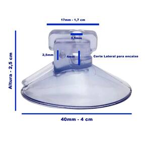 - Altura total da ventosa: 1,6 cm ( instalada)