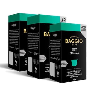 Ingredientes: Café torrado e moído em cápsulas. Alérgicos: Não contém glúten. Condições de Armazenamento: Conservar em local seco, fresco e arejado. Validade: 12 meses. Fabricante: Baggio Café. Marca: Não Informado