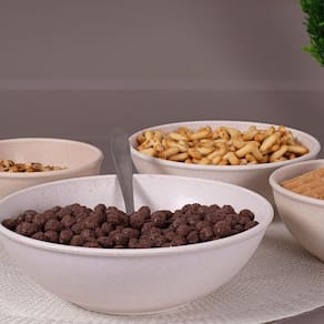 Tigela fabricada com matéria-prima sustentável, desenvolvida por meio da mistura entre 69% de materiais provenientes de fontes renováveis madeira + Polietileno Verde Im green tm e uma parcela reduzida de polipropileno. É a mais pura versatilidade que um produto pode lhe oferecer. Fundas e resistentes tem infinitas possibilidades de uso: servir pipoca, preparar uma bela salada, acomodar pães para mesa do café da manhã.