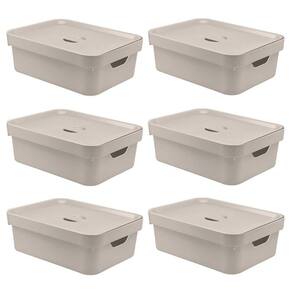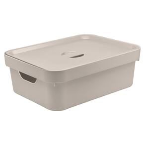 - 06 Caixa Plástica Organizadora Uo Cube Tamanho Médio 10,5 Litros Bege