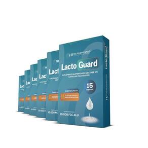 Através deste anúncio, você está adquirindo 6 seis potes de lacto guard lactase 15 cáps mastigáveis sabor baunilha hf suplementos