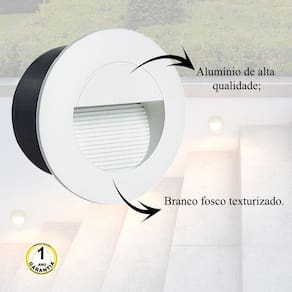 Esse é o balizador ideal para iluminar os seus caminhos internos ou externos. O Lup90 é uma peça para você embutir na sua escada ou parede. O seu destaque está na sua cor branco fosco texturizado e a sua usabilidade de instalação. Perfeito para áreas no geral como: corredor, garagem, escada, jardim, etc. Lup90 é o balizador para você iluminar os seus caminhos. O seu índice de proteção IP65, fornece uma proteção total contra poeira e protege contra jatos de água.Neste kit contém;- 07 unidades do balizador -Descrição do balizador:- Material: Alumínio de alta qualidade- Led integrado incluso - Led: Vidro Temperado- Cor: Branco fosco texturizado- Dimensões:Diâmetro: 8,4 cmProfundidade total: 4,5 cm Recorte:Diâmetro recorte maior: 6,7 cmDiâmetro recorte menor: 6,4 cmProfundidade: 4,3 cm- Potência máxima: 3W- Temperatura de Cor: 3000K- Tensão: Bivolt 110V - 220V - Grau de Proteção: IP65- Facho: 1- Vida Útil: 50.000 HorasNão necessita de lâmpada.