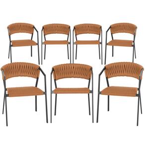 7 Cadeiras Atenas Tricô Náutico e Alumínio com Proteção UV para Varanda, Cozinha, Área, Jardim - Pintura Preta - Laranja