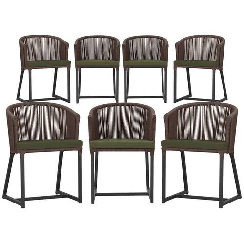 Combinando estilo e resistência, esta cadeira traz o melhor do design contemporâneo em alumínio com micro pintura e acabamento em corda náutica. O estofado impermeável completa o conforto e a funcionalidade, tornando-a ideal para ambientes externos e internos.