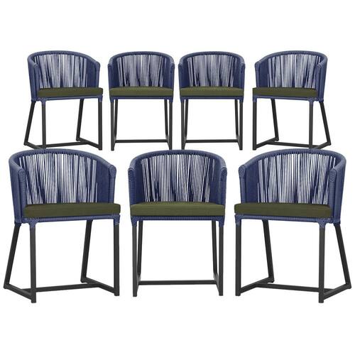 Combinando estilo e resistência, esta cadeira traz o melhor do design contemporâneo em alumínio com micro pintura e acabamento em corda náutica. O estofado impermeável completa o conforto e a funcionalidade, tornando-a ideal para ambientes externos e internos.