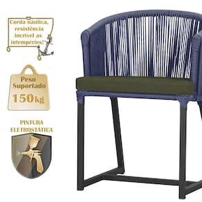 Fotos meramente ilustrativas. Tonalidades podem variar dependendo do monitor. Os objetos que ambientam as Fotos não acompanham o produto. Antes de comprar o seu produto verifique as medidas, o local onde pretende instalar e se necessário contratar o serviço de um profissional qualificado. Produto conhecido como: Cadeira Noronha, Cadeira de alumínio, Corda náutica, Estofado impermeável, Móveis de exterior, Cadeira resistente à água, Design moderno em Cadeira, Cadeira para área externa, Cadeira de jardim, Móveis para varanda, Cadeira durável, Cadeira de alta qualidade, Conforto em Cadeira, Cadeira elegante.
