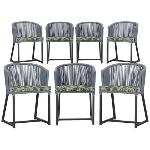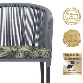 Combinando estilo e resistência, esta cadeira traz o melhor do design contemporâneo em alumínio com micro pintura e acabamento em corda náutica. O estofado impermeável completa o conforto e a funcionalidade, tornando-a ideal para ambientes externos e internos.