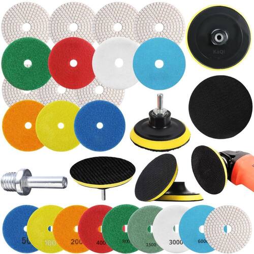 7 Lixas 4 Pol. 100Mm Diamantada Grão + 1 Disco Prato Suporte + 1 Pino M14 Granito Mármore Kaqi