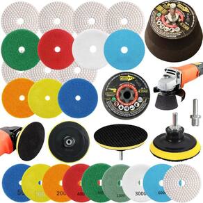 7 Lixas Grão 4 Pol. 100mm Diamantada + 1 Rebolo Cônico 45 Graus + 1 Disco Prato + 1 Pino M14 KaQi GRÃO: 100x3-200x4 Kit 7 Lixas Diamantadas Grão Disco 4 Polegadas 100mm KaQi + 1 Rebolo Grão 120 Copo Cônico 45 Graus 4 Polegadas M14 Forcety. + 1 Suporte Prato Disco 100mm M14 KaQi + 1 Pino Adaptador Multiuso Rosca Universal M14 KaQi. Para Desbastes, Polimentos, Acabamentos, Boleamentos, Lixamentos a Seco e Úmido. Ideal para profissionais e entusiastas de reformas e construção. Transforme o acabamento das suas superfícies com o Kit 7 Lixas Grão 4 Pol. 100mm Diamantada + 1 Rebolo Cônico 45 Graus + 1 Disco Prato + 1 Pino M14 Desenvolvido para oferecer o melhor polimento e acabamento, é perfeito para quem busca resultados profissionais, tanto em pedras como granitos, mármores, cerâmicas, quanto ardósia, calcário, dekton, quartzo, porcelanato, pedra projetada, concreto, nanoglass, super nano, vidro e muito mais. Seu lixamento pode ser a seco e a úmido, o que proporciona um processo mais rápido, sem gerar calor excessivo. Assim, é possível garantir um resultado sem manchas ou falhas, e ainda favorece um efeito brilho d'água incrível O Rebolo Copo Cônico 10x5cm Grão 120 Forcety é ideal para desbastes, retificações, boleamentos e acabamentos. Projetado para oferecer eficiência, durabilidade, confiabilidade e resultados excepcionais, é perfeito para profissionais e entusiastas de reformas e construções. Não à toa, é o rebolo número 1 das marmorarias, azulejistas e oficinas de todo Brasil O Disco 100mm e o pino adaptador M14 podem ser utilizados em conjunto com as lixas e com o rebolo. Com sistema de gruda e desgruda fácil, podem utilizadas em lixadeiras, esmerilhadeiras, politrizes, furadeiras, parafusadeiras. Permite, assim, ampliar a gama de usos do kit. Principais características: 1. Durabilidade extra, alta resistência ao desgaste, longa vida útil e desempenho, além de excelente performance em diversos tipos de materiais. 2. Acabamento impecável no desbaste e polimento de superfícies de pedra, mármore, calcário, ardósia, porcelanato e outros, sem deixar manchas ou marcas indesejadas. Pode ser trabalhada em superfícies claras ou escuras. Oferece uma remoção eficiente de material e um acabamento uniforme. 3. Versatilidade no uso com diversas ferramentas, já que pode ser Utilizado em esmerilhadeiras, lixadeiras, politrizes e furadeiras elétricas. 4. Eficiência de montagem, uma vez que possui sistema de fixação rápido. Basta encostar a lixa no suporte do disco para grudar, e, para remover, é só puxar na direção contrária. Conteúdo da embalagem: 7 Lixas DÁgua 4 Pol. 100mm Disco Diamantado KaQi GRÃO. + 1 Rebolo Grão 120 Copo Cônico 45 Graus 4 Polegadas M14 Forcety. + 1 Suporte Prato Disco 100mm M14 KaQi + 1 Pino Adaptador Multiuso Rosca Universal M14 KaQi. Especificações Lixas: Diâmetro: 100mm 4 Polegadas . Furo central: 1,3cm diâmetro. Espessura 1 unidade: 0,4cm. Maleabilidade: flexível. Lixamentos: seco e úmido. RPM: ideal entre 3000 a 5000 rotações por minuto. Material da lixa: diamante sintético industrial e resina premium. Costado: tipo vellcro. Fácil de fixar e remover. Especificações Rebolo: Trabalho: a seco ou refrigerado com água. Diâmetro: 4 Polegadas 100mm 10,16cm x altura 5,08cm. Velocidade: 9023RPM. Rosca: M14. Material: Carbeto de Silício SiC com diamantes. Feito para ser conforme norma ABNT NBR 15230. Especificações Prato Suporte: Diâmetro do disco: 100mm 4 Polegadas . Modelo do disco: M14 com superfície tipo vellcro. RPM: até 12000. Rosca: padrão M14 14mm . Especificações Pino Adaptador M14: Para Furadeira Parafusadeiras, Politrizes, Lixadeiras e Esmerilhadeiras. Fixa em discos pratos M14 para uso com lixas, boinas, espumas de polir, entre outros acessórios. Rosca: M14 14mm . Pino largura: 8mm. Altura: 4,4cm.