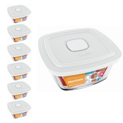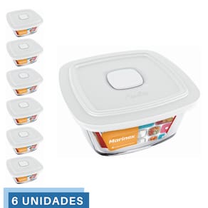 7 Potes De Vidro Marinex Facilita Quadrado Com Tampa 2 Litros