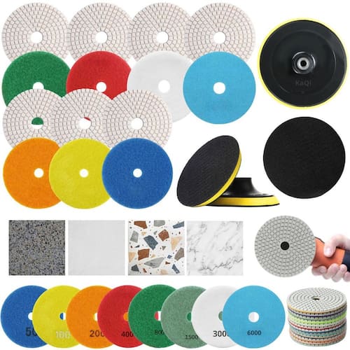 Transforme o acabamento das suas superfícies com as Lixas Diamantada 4 Polegadas 100mm da KaQi + Disco Suporte Prato 4 Polegadas 100mm M14 Desenvolvida para oferecer o melhor polimento e acabamento, é perfeito para quem busca resultados profissionais, tanto em pedras como granitos, mármores, cerâmicas, quanto ardósia, calcário, dekton, quartzo, porcelanato, pedra projetada, concreto, nanoglass, super nano, vidro e muito mais. Seu lixamento pode ser a seco e a úmido, o que proporciona um processo mais rápido, sem gerar calor excessivo. Assim, é possível garantir um resultado sem manchas ou falhas, e ainda favorece um efeito brilho d'água incrível