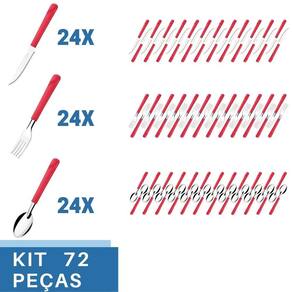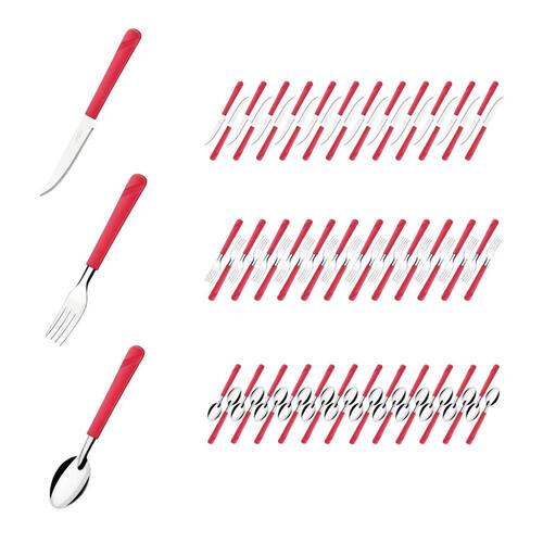 72 Talher Faca Garfo Colher Inox Vermelho Luna Restaurante