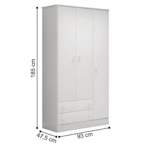 O Guarda Roupa é feito em MDP, contém três portas e duas gavetas com corrediças metálicas.