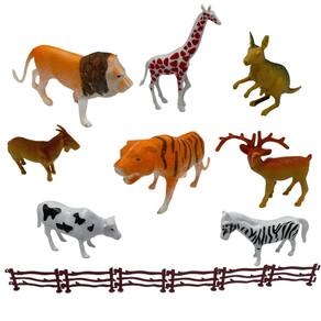 Kit Animais da Selva para Cenário Maquete 8 bonecos de plástico em Miniatura e 6 Cerca - 14 peças