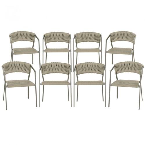 8 Cadeiras Atenas Tricô Náutico E Alumínio Com Proteção Uv Para Varanda, Cozinha, Área, Jardim - Bege